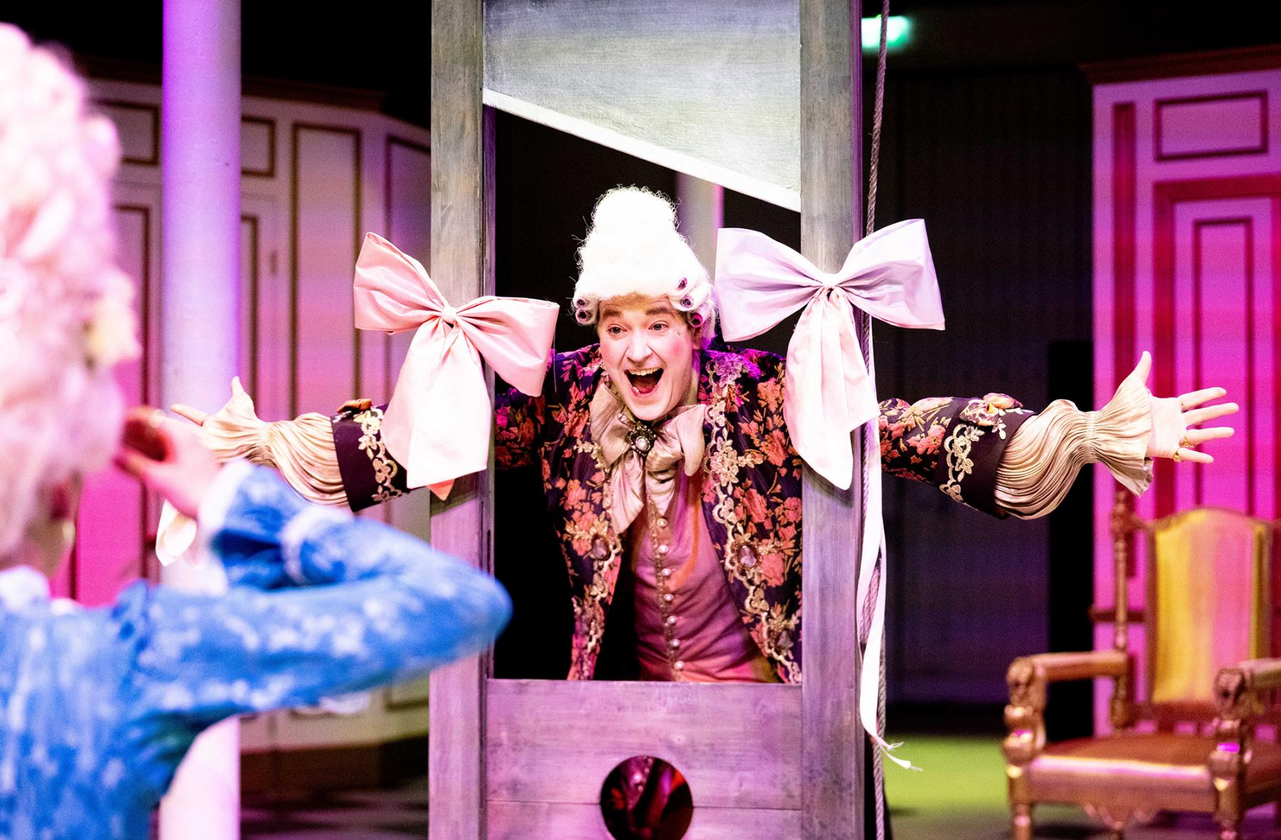 Seit zwanzig Jahren warten Marie-Antoinette und ihr Mann, König Ludwig der XVI., im Schloss von Versailles nun schon auf ihre Hinrichtung. Auf den Straßen und Plätzen vor dem Schloss toben Aufstände, die französischen Revolutionäre können sich partout nicht einigen, wo die neu errungene Freiheit denn nun hinführen soll. Stattdessen bringen sie sich gegenseitig um und vergessen darüber die ehemals Herrschenden. Robespierre verzweifelt an diesem unentschlossenen und komplizierten Volk, das die Freiheit zwar erkämpft hat, aber nicht recht damit umzugehen weiß: Jetzt wollen auf einmal alle mitreden. Derweil versuchen Marie und Ludwig die Wartezeit mit den beiden übrig gebliebenen Angestellten und viel Klatsch und Tratsch möglichst angenehm totzuschlagen. In verzweifeltem Zeitvertreib baut Ludwig eine Guillotine für den Hausgebrauch, der während diverser Testläufe immer mehr Besucher zum Opfer fallen. So bunt das Leben des einstigen Herrscherpaares, so schwarz der Humor dieser hochtourigen Komödie. Mit wunderbar überdrehten Figuren und viel Slapstick werden Regierungsformen und Revolutionsgebaren reflektiert – ohne sich von lästigen historischen Fakten die Kirschen von der Sahnetorte nehmen zu lassen.